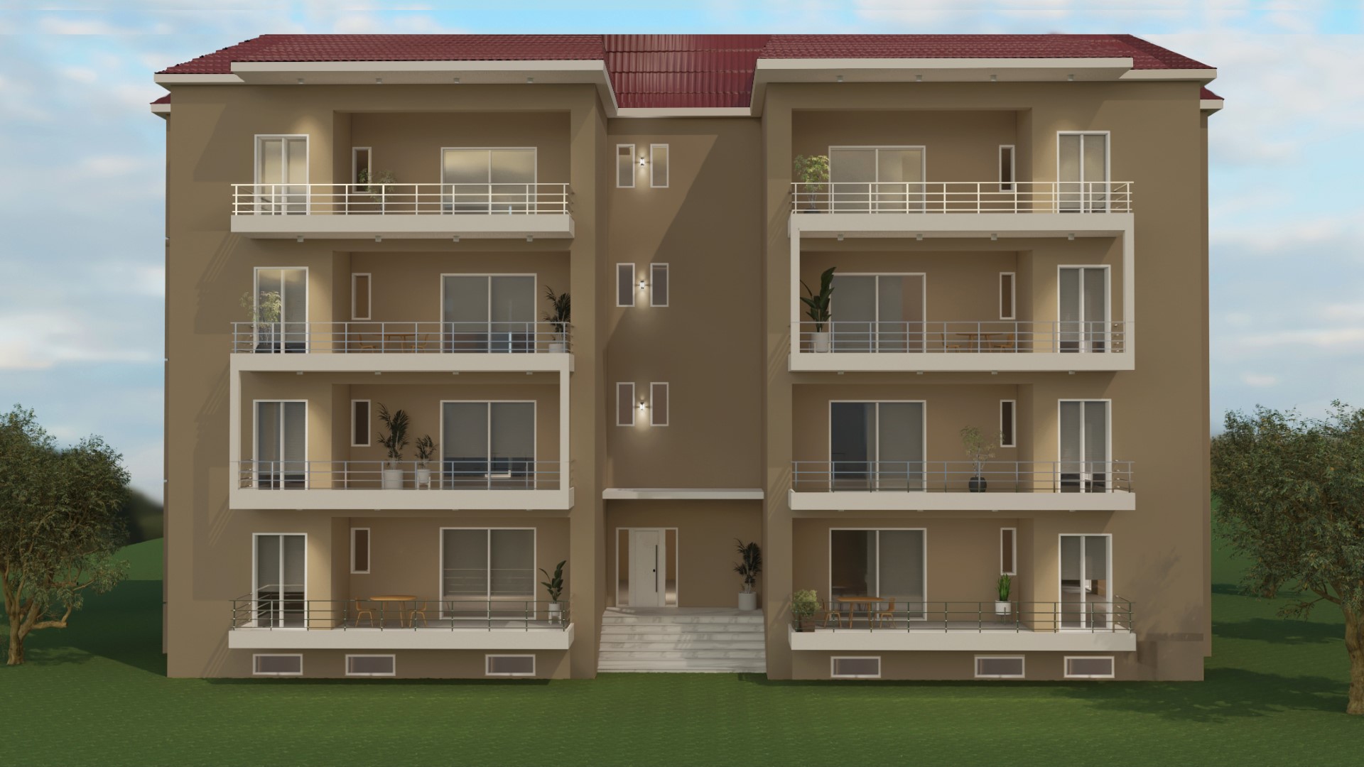 New apartment building in Lagkadas, Thessaloniki, with apartments of 3 bedrooms, a parking area in courtyard and storage rooms in the basement. Estimated time of completion is Christmas 2023.